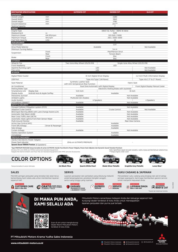 Berikut spesifikasi lengkap Mitsubishi Destinator