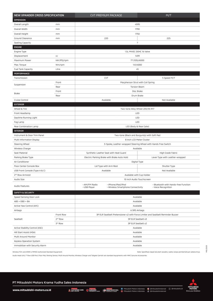 Berikut spesifikasi lengkap Mitsubishi New Xpander Cross