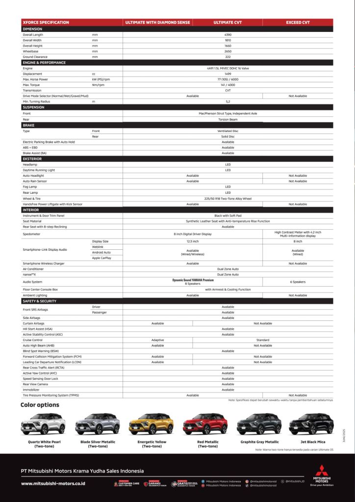 Berikut spesifikasi lengkap Mitsubishi Xforce